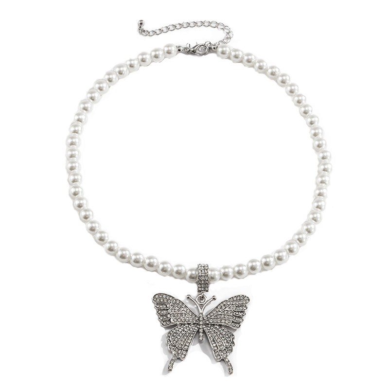 Diamond-Style Butterfly Pearl Choker Necklace for Women – Clavicle Chain Design
