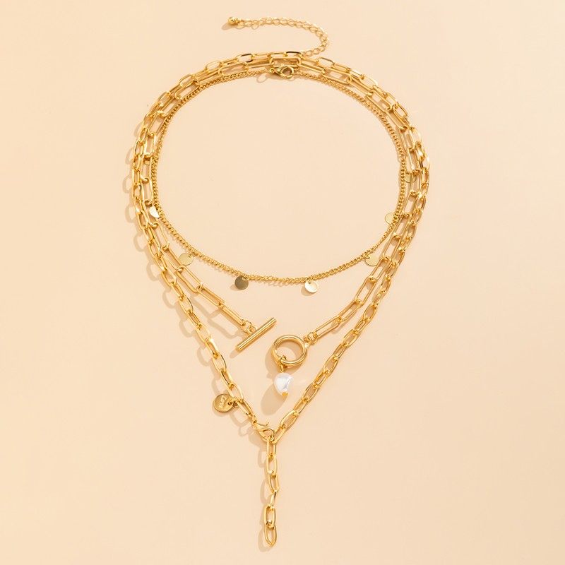 3-Piece OT Buckle Cross Chain Necklace Set – Layered Clavicle Chain Design