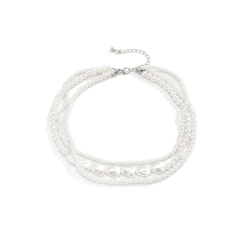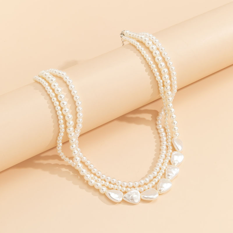 This multi-layer artificial pearl necklace features a refined layered clavicle chain design with smooth artificial pearl detailing. The multi-layer structure adds subtle depth while maintaining a clean and elegant appearance suitable for everyday wear.