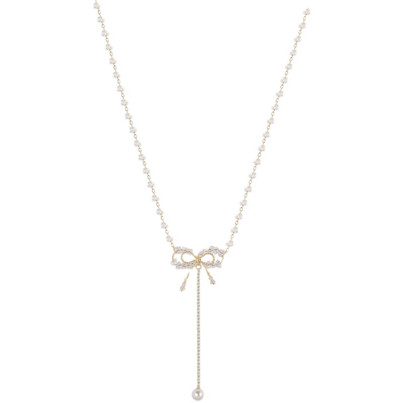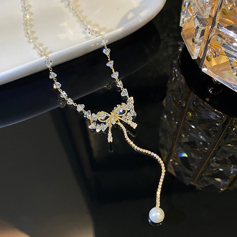 Crystal Bow Pendant Necklace for Women – Minimalist Clavicle Chain Fashion Necklace