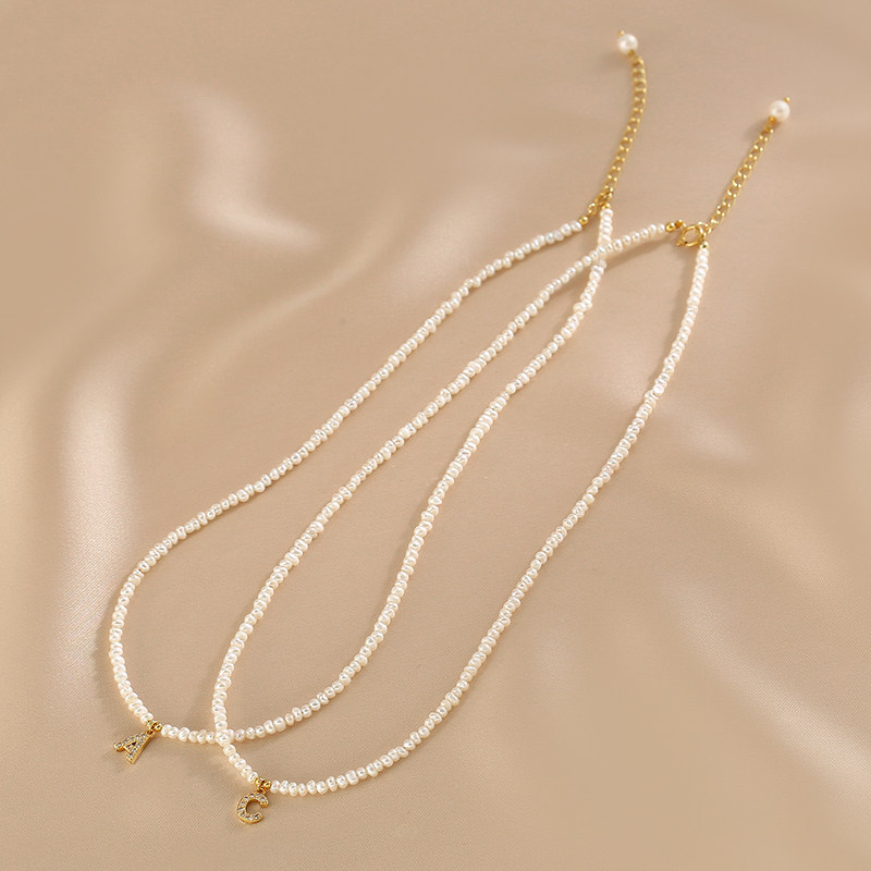Natural Freshwater Millet Pearl Letter Clavicle Necklace for Women – Minimalist Pearl Necklace