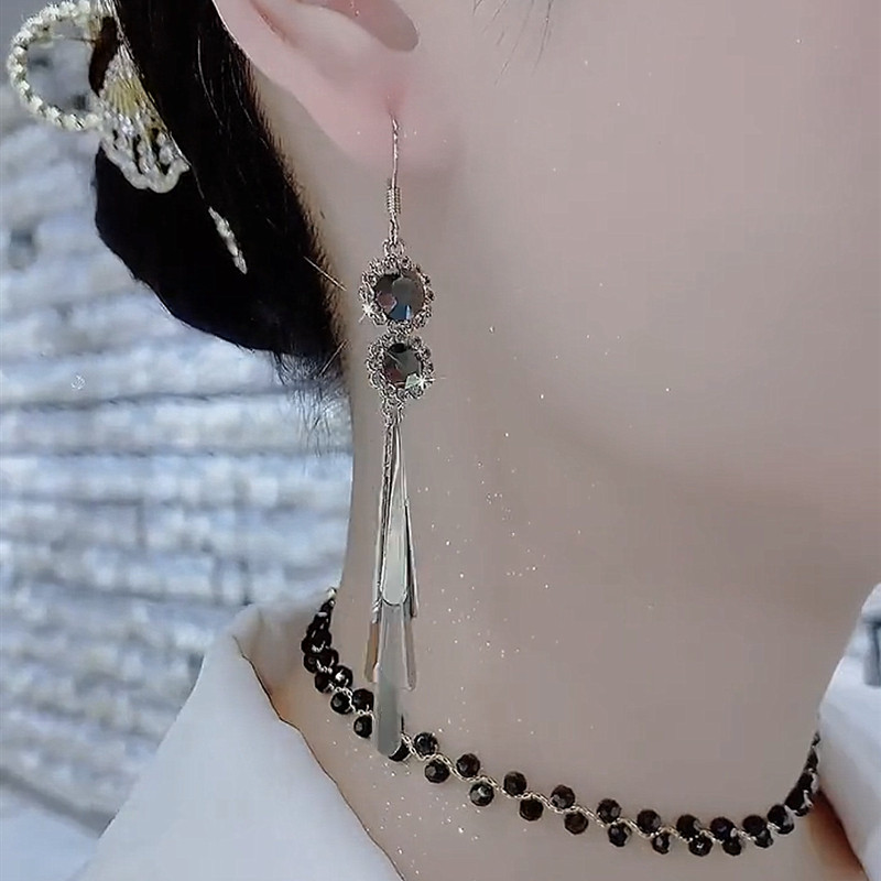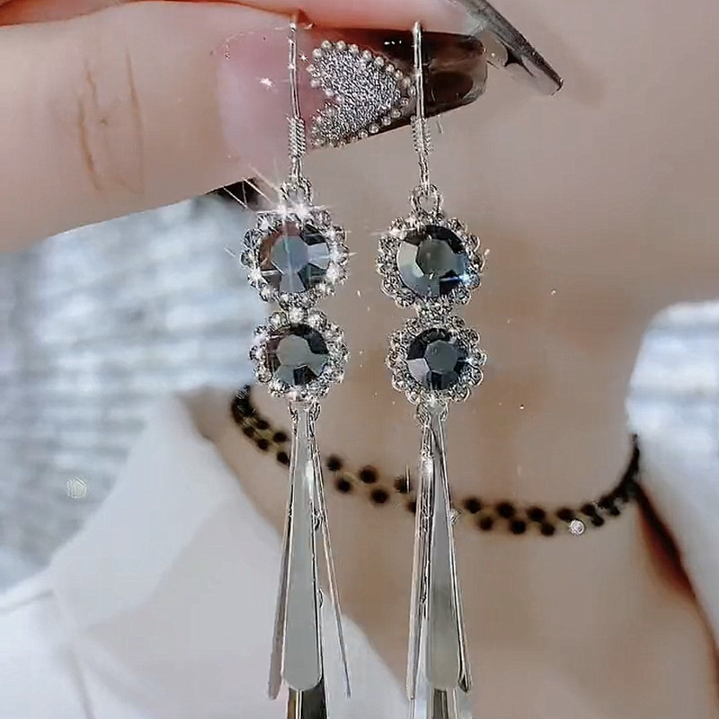 Crystal Long Tassel Earrings for Women – French Retro Style Drop Fashion Earrings