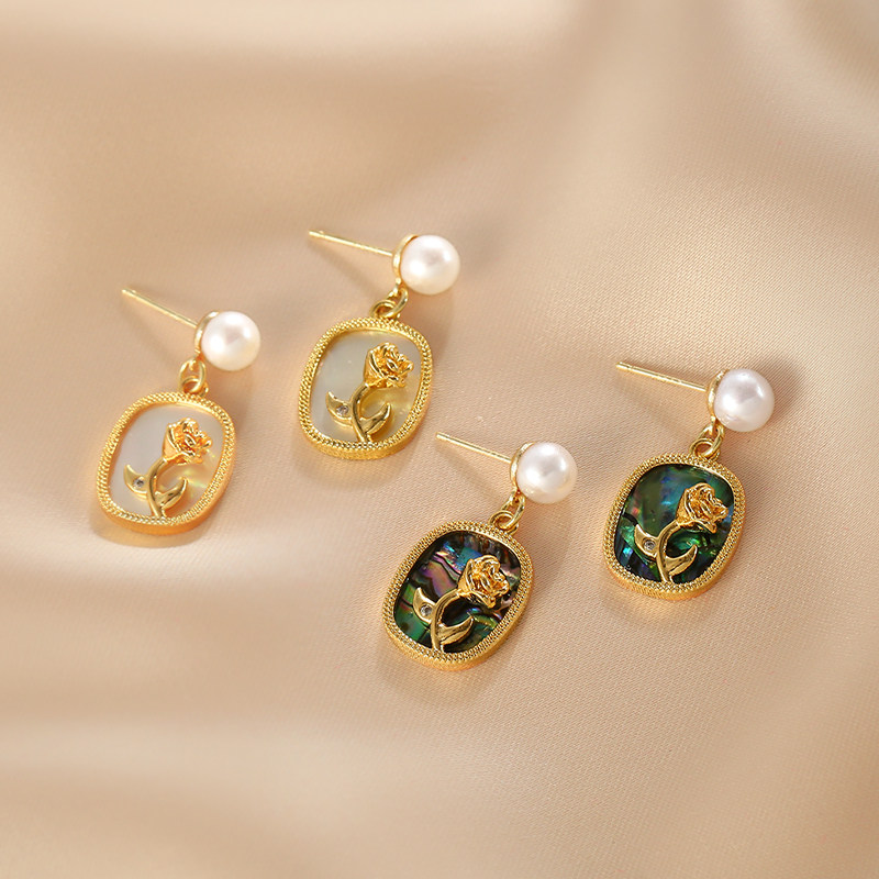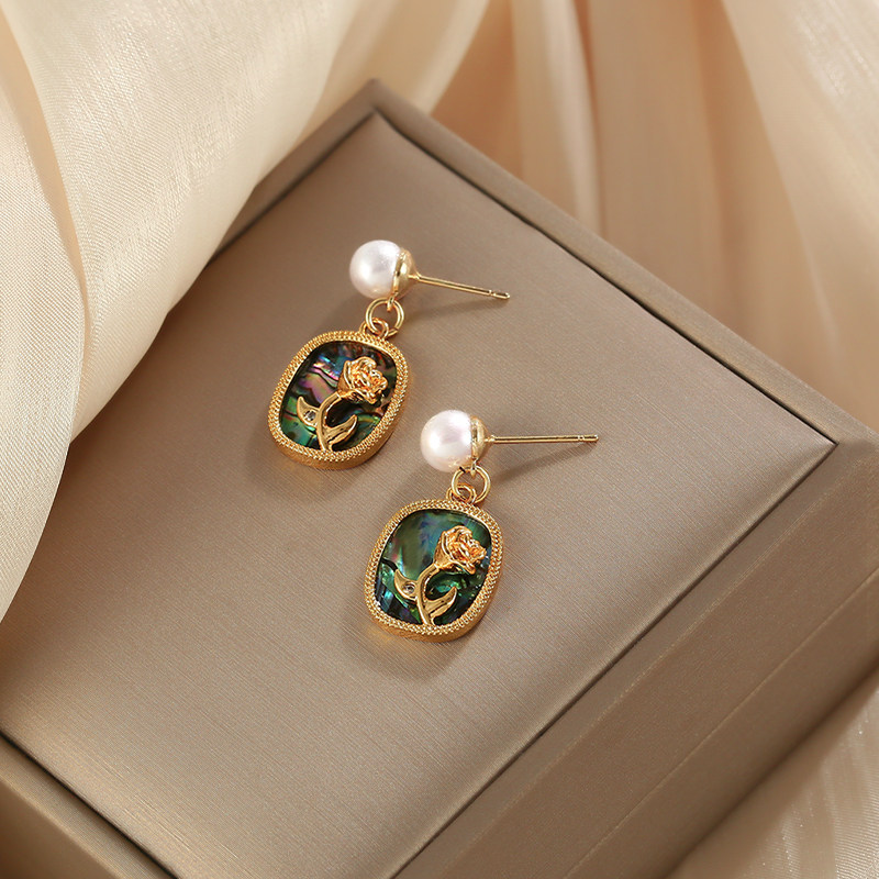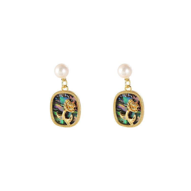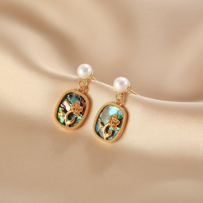 Geometric Mother-of-Pearl Earrings for Women – Rose Mirror Finish Retro Style Fashion Earrings