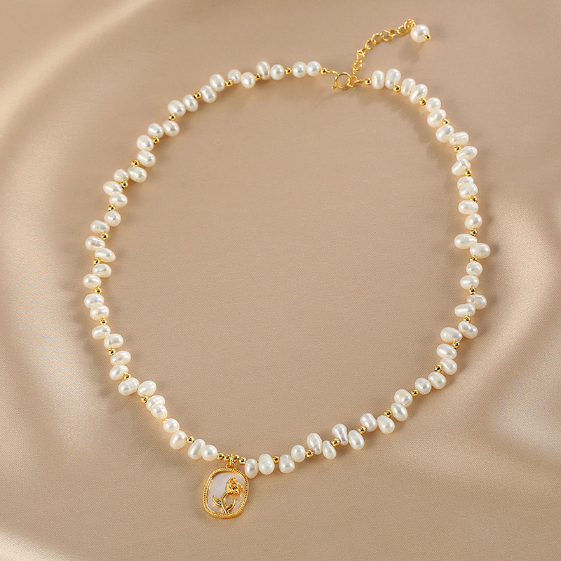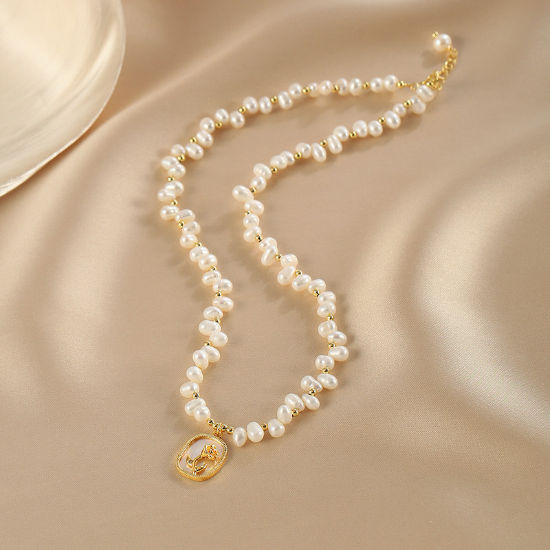 Rose Mirror, Geometric Pendant, Gypsophila, Natural Pearl Necklace, Light Luxury Niche Design, Fairy Temperament Clavicle Chain