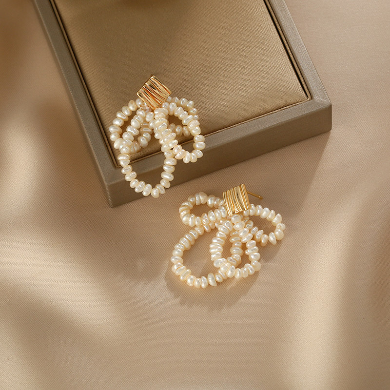 These natural baroque pearl earrings feature an irregular pearl texture inspired by vintage palace aesthetics. The tassel design adds gentle movement while highlighting the organic beauty of baroque pearls.