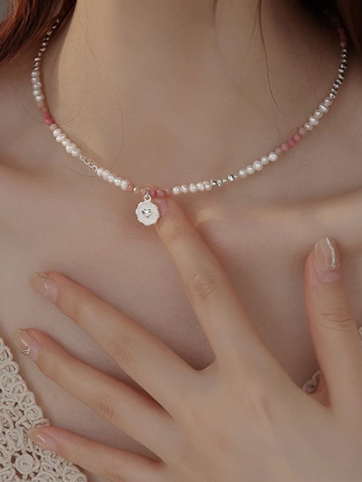 Silver Heart Pearl Clavicle Necklace for Women – Minimalist Love Pendant Necklace