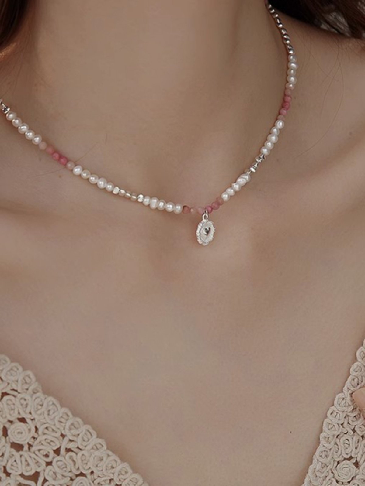 Lightweight and comfortable, it rests naturally along the collarbone.