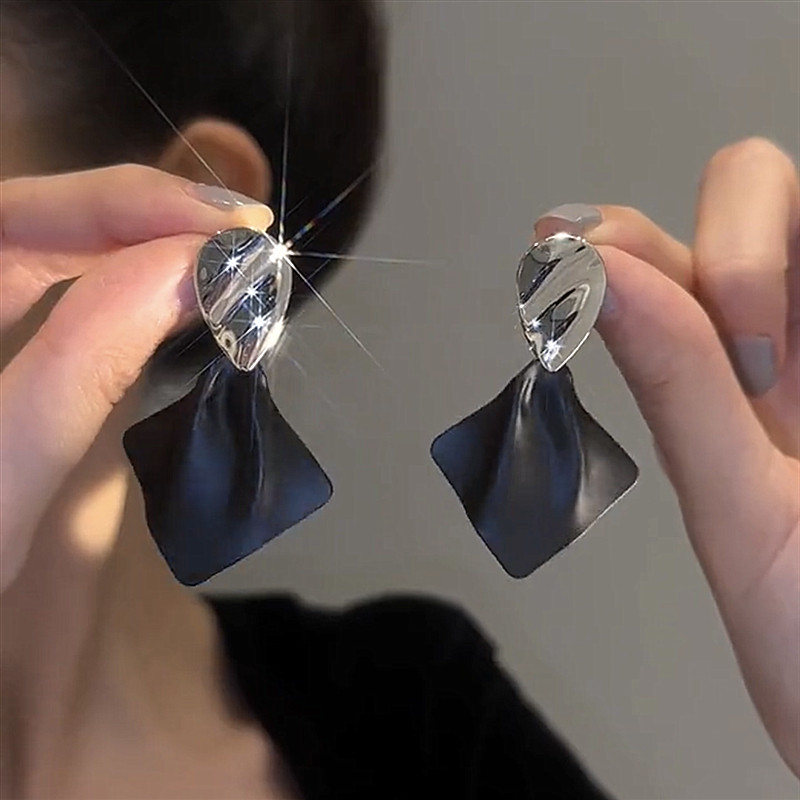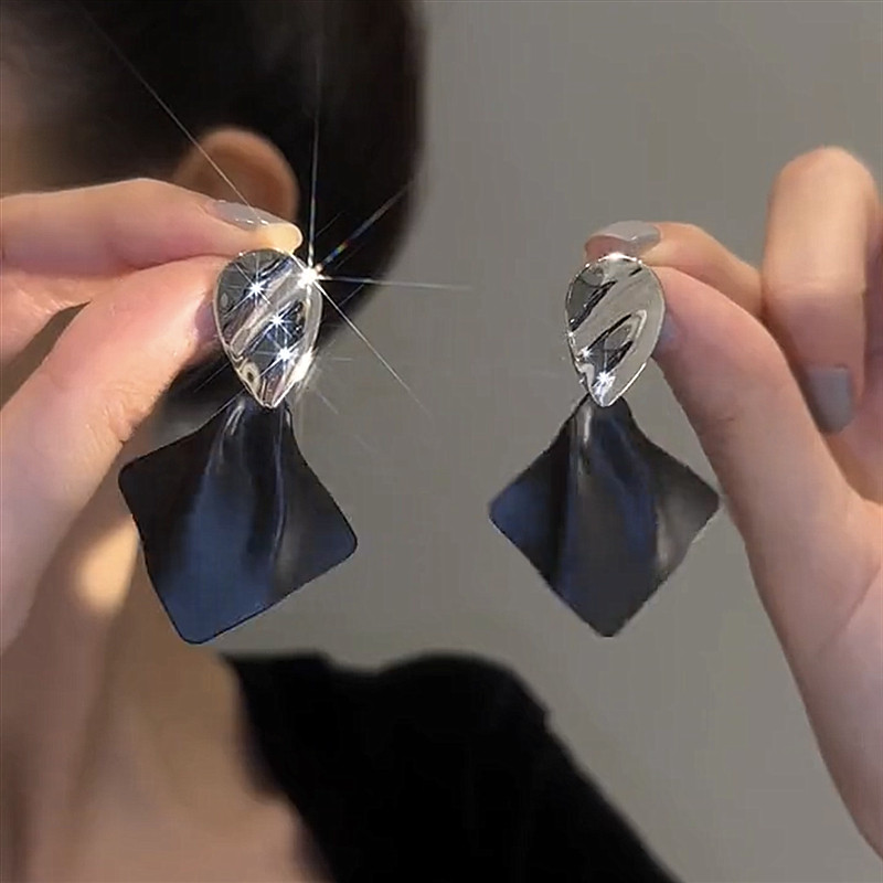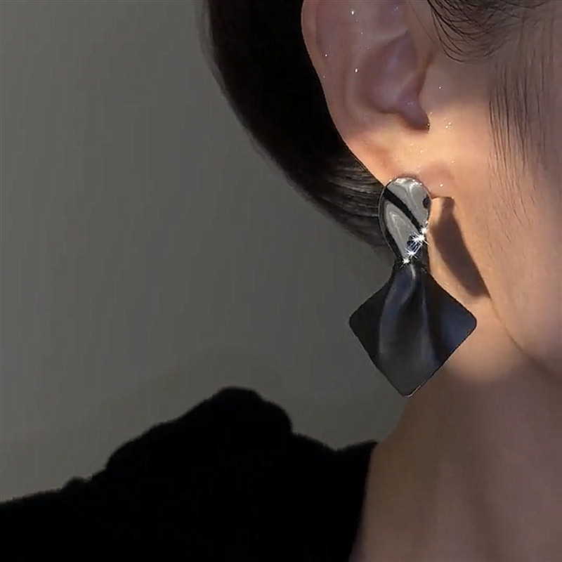 Black Antique Contrast Earrings for Women – Silver Needle Vintage Style Fashion Earrings