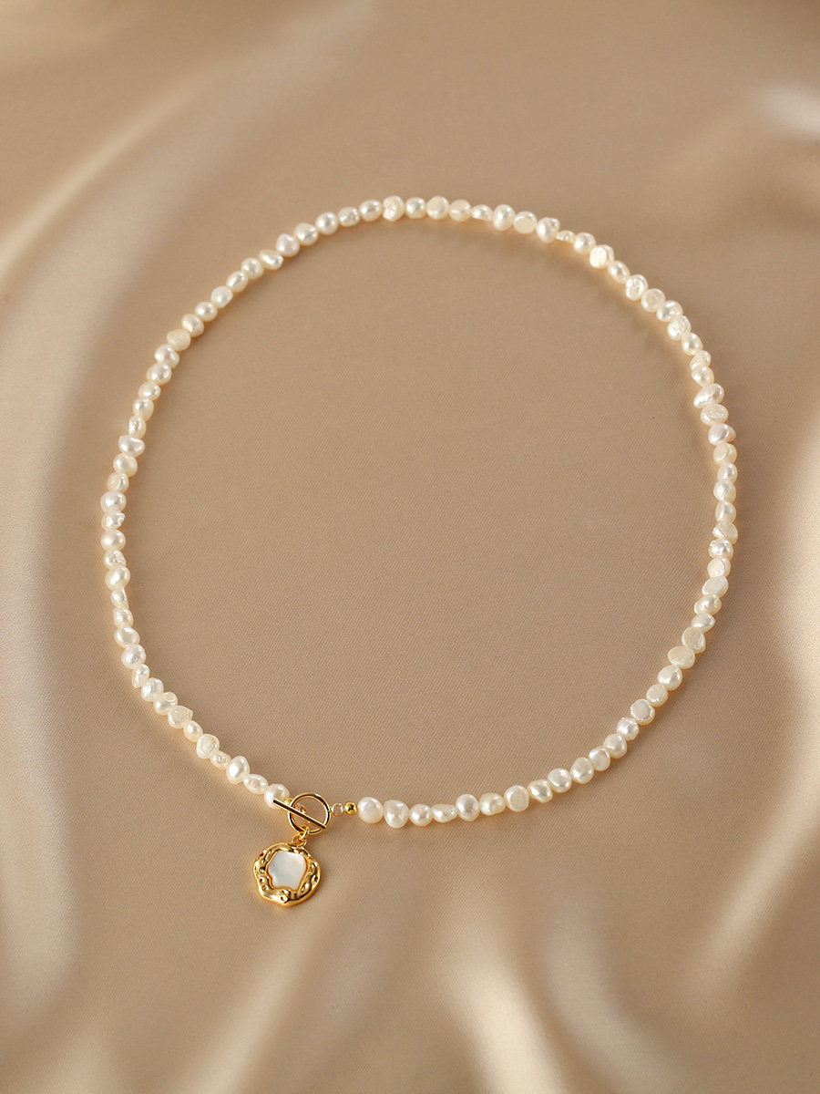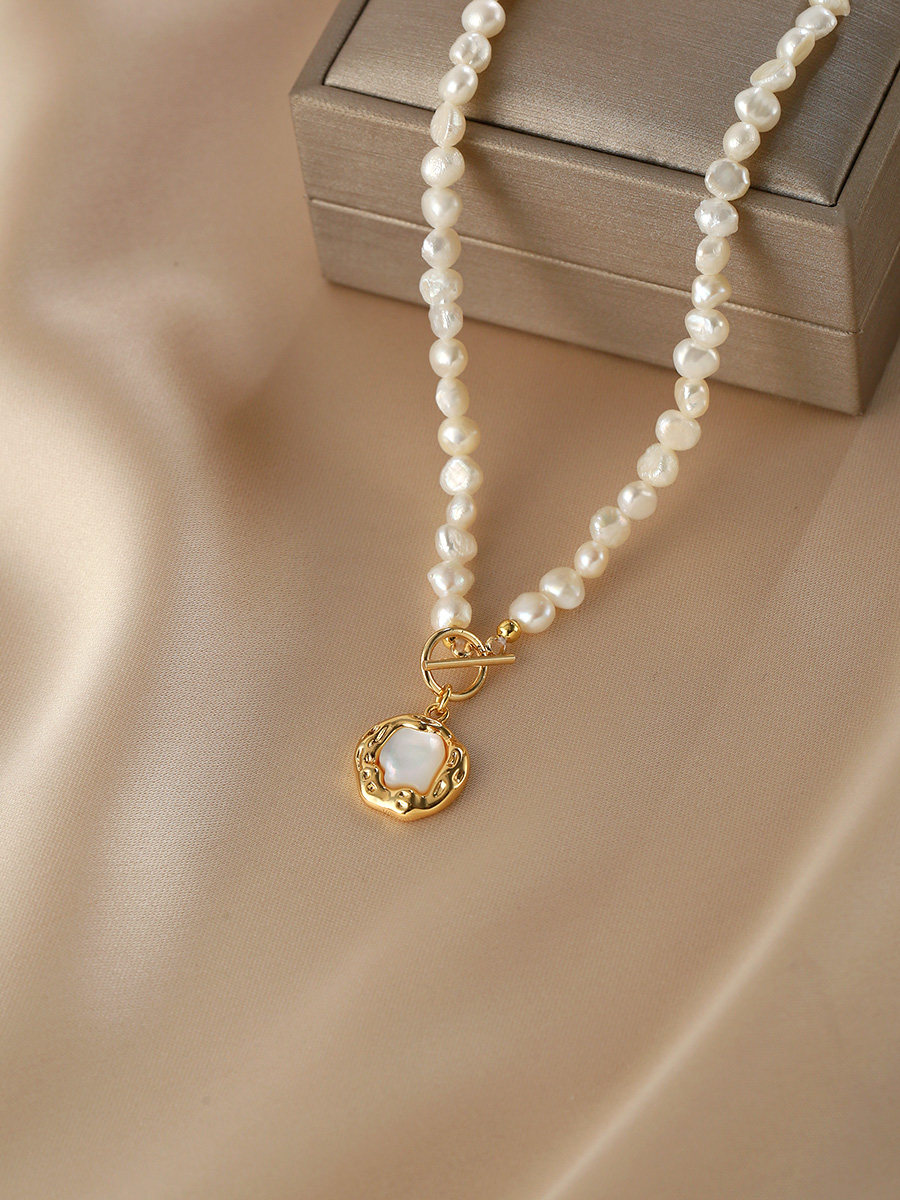 Baroque Natural Pearl Necklace for Women – OT Buckle Irregular Bead Clavicle Chain with Shell Pendant