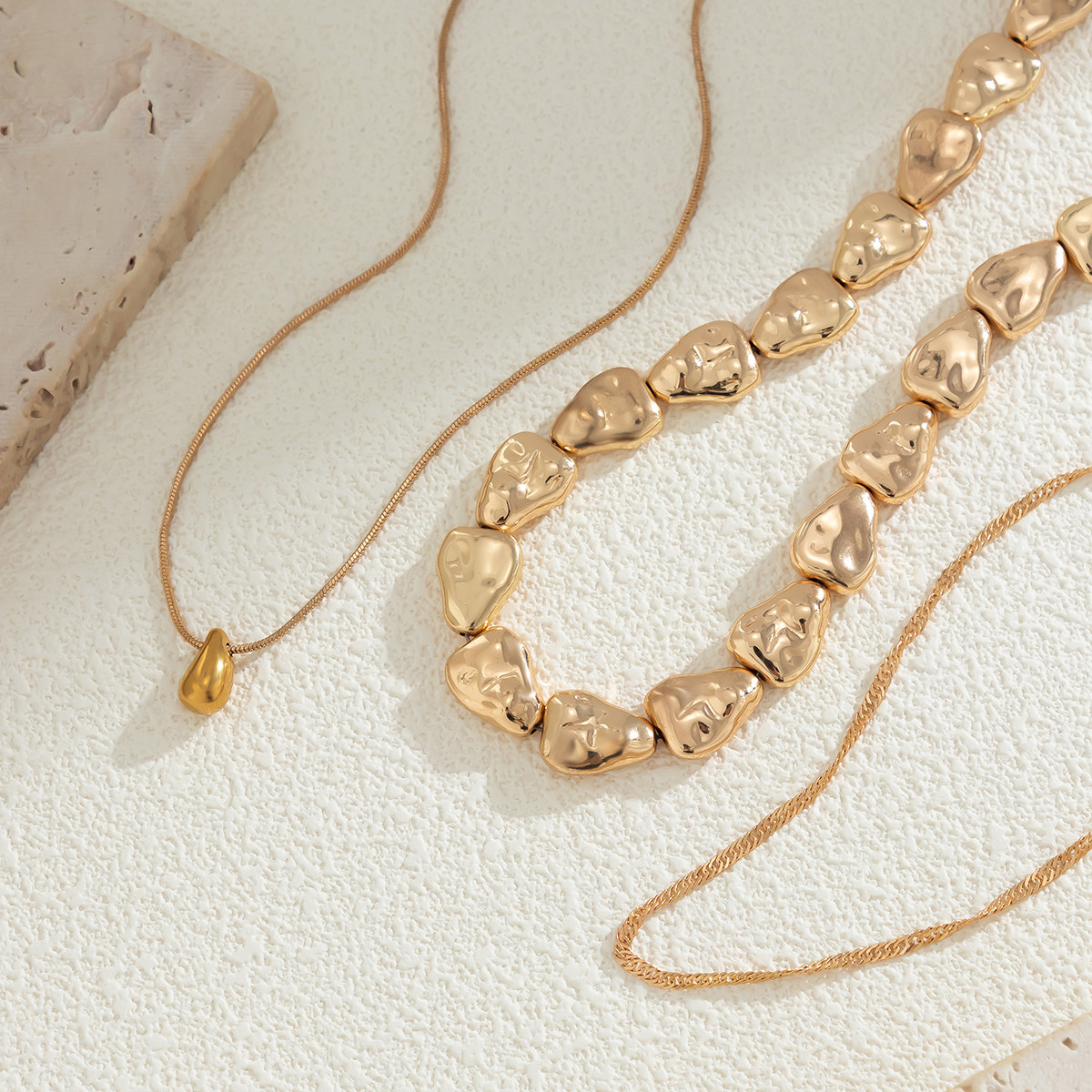 Crafted with lightweight CCB materials, the snake bone chains offer a smooth finish and comfortable fit for everyday wear. The minimalist comma-inspired design makes this set easy to pair with casual outfits, dresses, and seasonal styling.