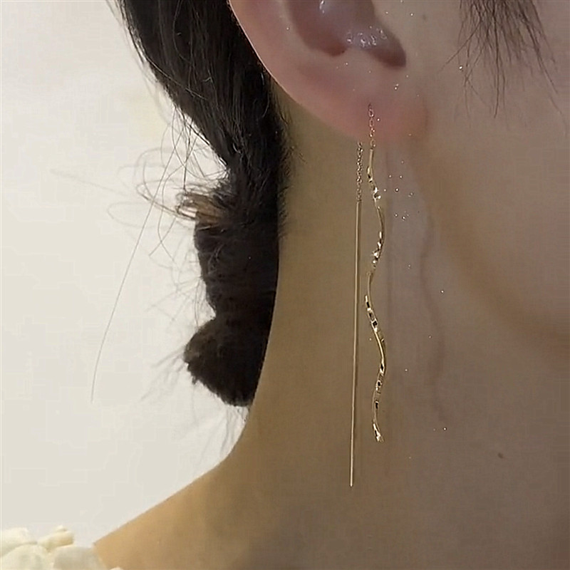 S-Shaped Wavy Tassel Earrings for Women – Long Drop Korean Style Fashion Earrings