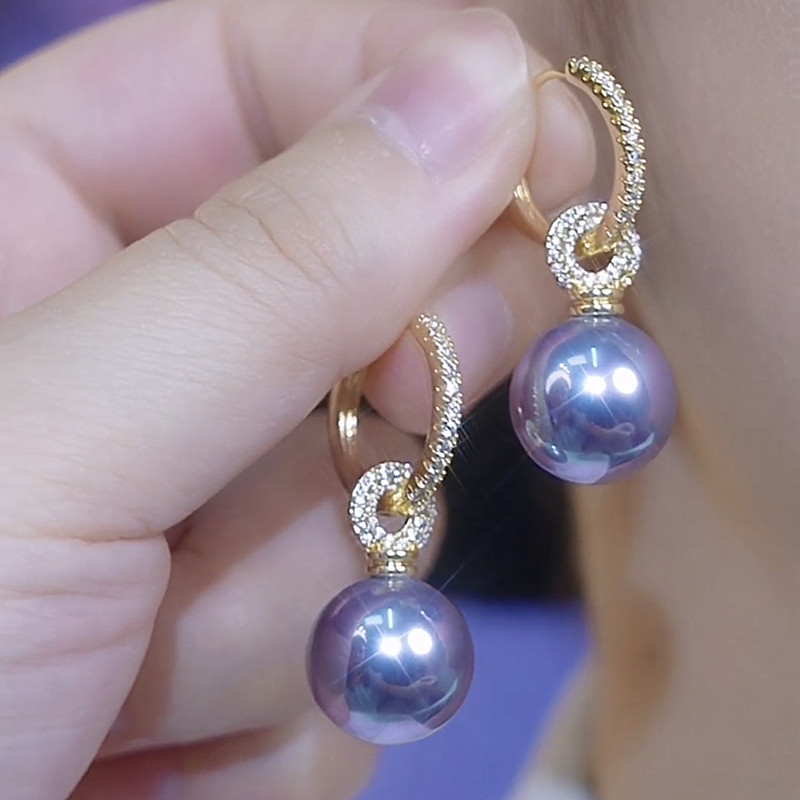 These purple pearl earrings feature a soft, elegant tone that adds subtle color to everyday outfits. The pearl surface reflects light gently, creating a calm and balanced appearance.