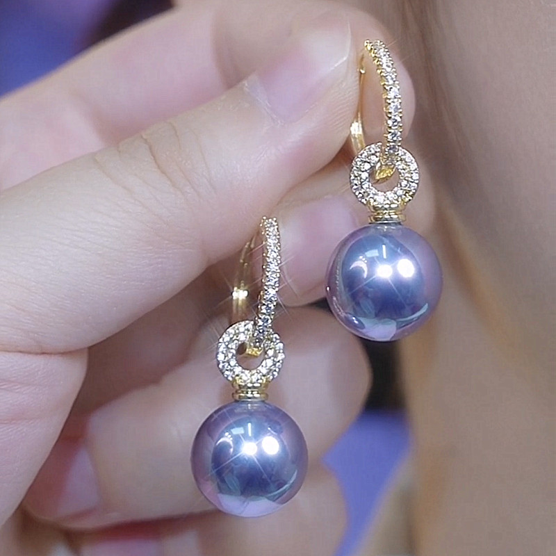 Purple Pearl Earrings for Women – Elegant Fashion Pearl Earrings, Lightweight Daily Jewelry