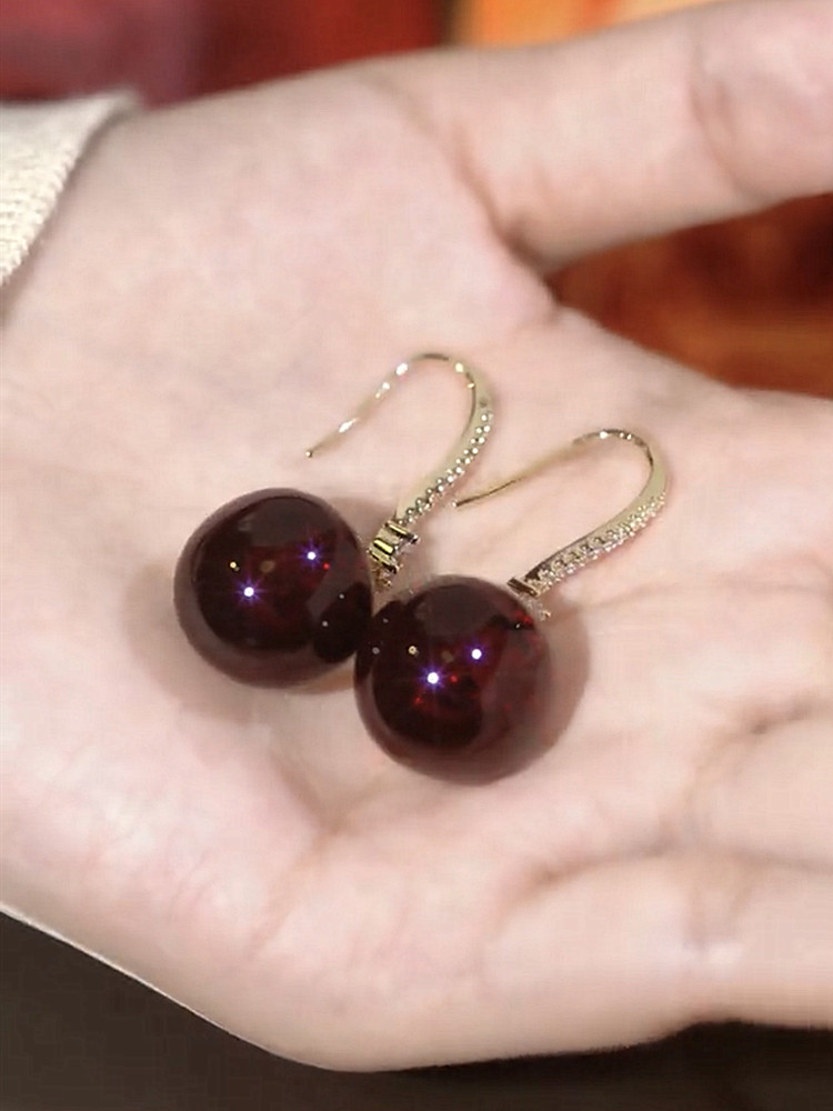Featuring a clean ear hook design with red cherry accents, these earrings balance playful elements with a neat silhouette. The compact size makes them easy to coordinate with different outfits.
