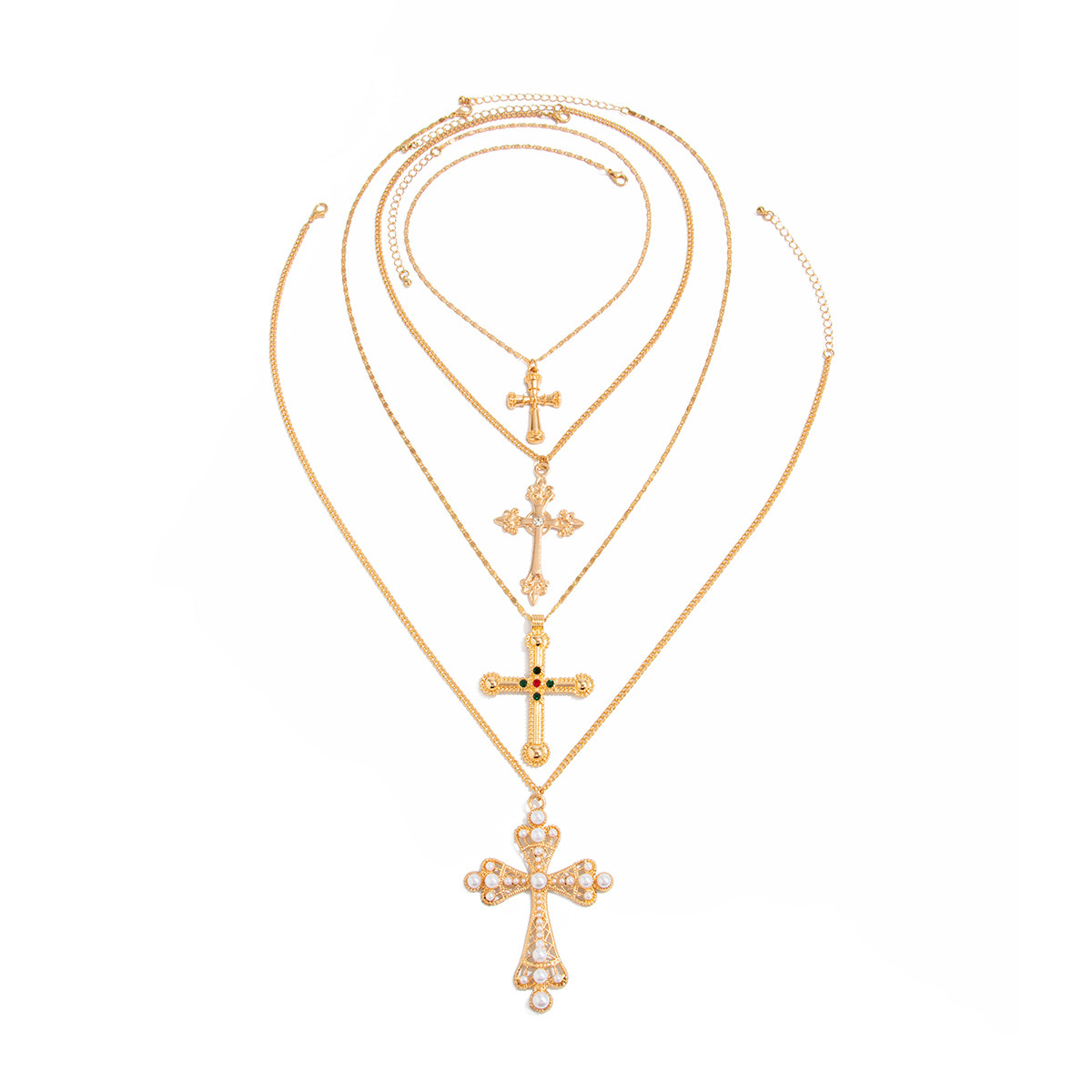 4-Piece Cross Necklace Set for Women – European & American Summer Fashion