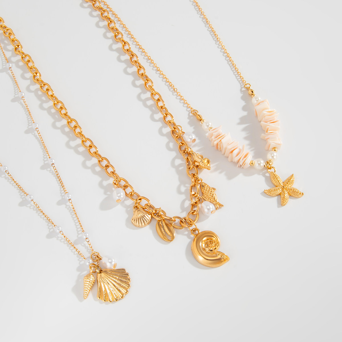 3-Piece Conch, Starfish & Scallop Necklace Set – Layered Clavicle Chain Design
