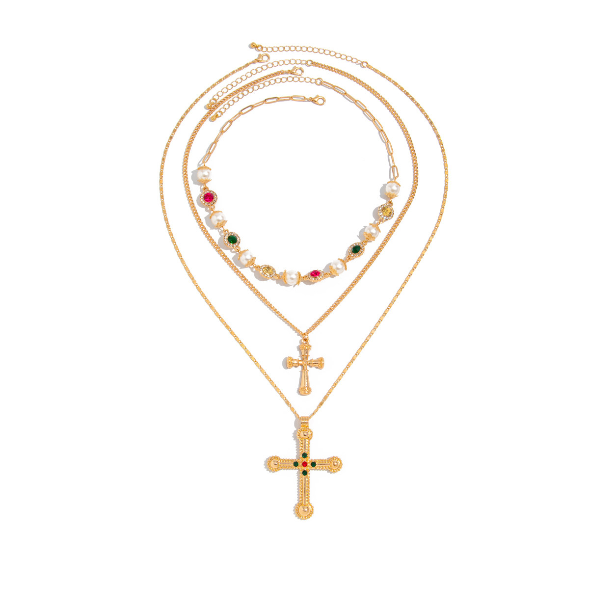 3-Piece Diamond-Style Cross Necklace Set for Women – Layered Clavicle Chain Design