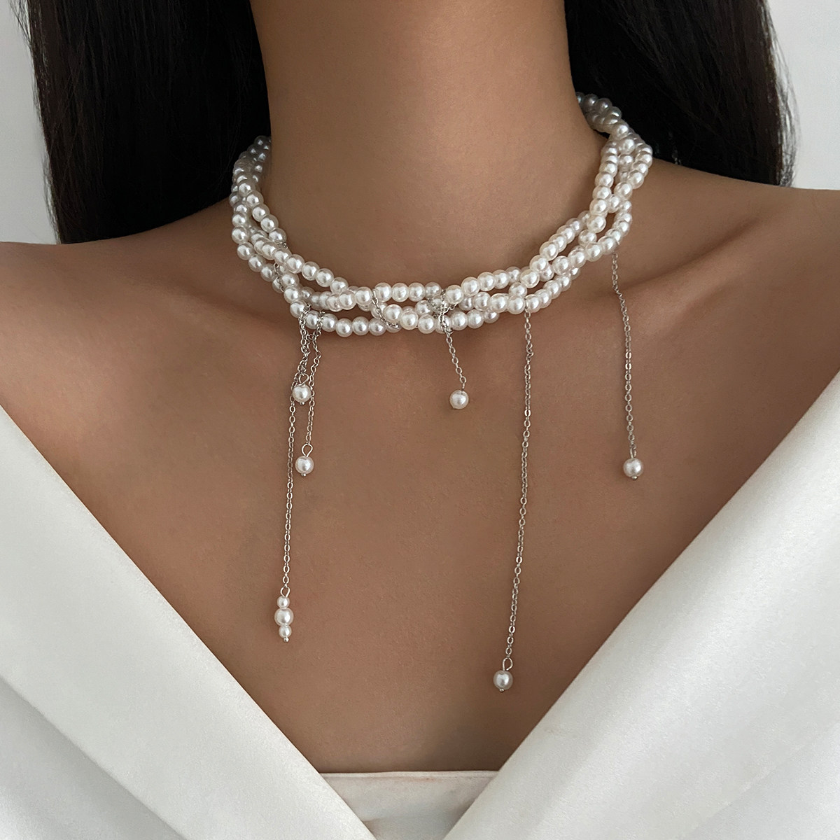 Tassel Chain Braided Imitation Pearl Necklace for Women – Clavicle Chain Design